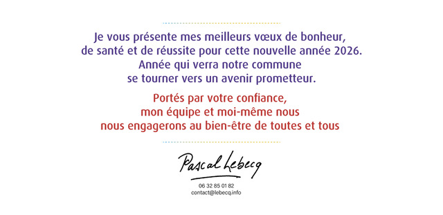 - ActualitĂ©s gĂ©nĂ©rales đđ Pascal Lebecq et toute sa liste constituĂ©e pour les Ă©lections municipales vous souhaitent une chaleureuse nouvelle annĂ©e 6 janvier 2026 /